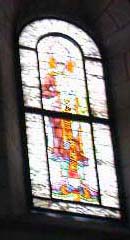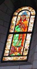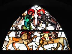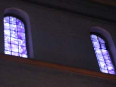 Georg教会はプロテスタント教会で、祭壇には絵が飾ってあるだけ、ステンドグラスも質素。入り口の扉の上のステンドグラスがかわいかった。