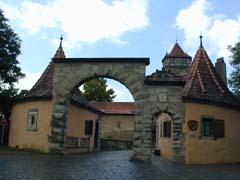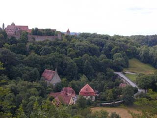 白い塔Weissertrumを通って北東のGalgen門を見る。来た道を戻って、Markus塔を通り、東のRoeder門を見る。Markt広場に戻って解散し、ともぶは買物、私は北端のKlingen稜堡にいき、城壁に上がってほんの少し歩いてみた。ここから東半分、南端のSpital稜堡まで城壁を歩けるらしい。門をぬけてすぐのWolfgans教会には時間がなくて行けなかった(リーメンシュナイダーの祭壇があった)。