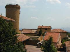 武骨な門をぬけ、細い路地を歩いてゆるやかな坂を少しのぼると、教会に出た。教会の階段を上ると景色が一望できる。外壁にそって少し歩くと、村の中央の円筒のすぐ近くに出る。また狭い路地をぬけると最初の門に戻る。なんと美しい村だろう。