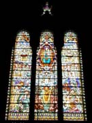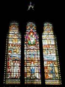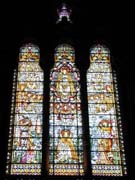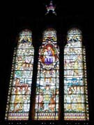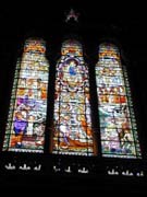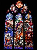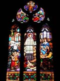 教会は古く、絵画もいい感じだが、ステンドグラスは新しい。主に宗教画で、いろいろなタッチのものが混在している。バラ窓も新しく、色がテラテラしている。教会としてはいまいちだった。