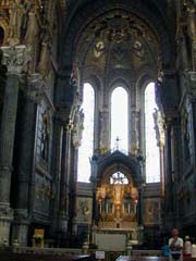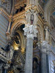 身廊は高く、ステンドグラスの色は薄めなので、結構明るい。至る所に彫刻が施され、非常に手が込んでいる。まさにリヨン市民の財力を結集した感じ。