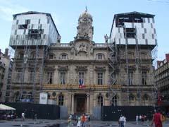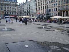 今日はフランスの祝日で、今夜は花火があるらしく、町にもお祭り気分が満ちている。広場では若者が、おそらくワールドカップの時に使えなかった爆竹を、ばんばん鳴らしていてこわい。いきなり足下でバン!とか鳴るからおちおち歩いていいられない。そこはあぶないので、市庁舎の方に回って、テロー広場を見に行く。