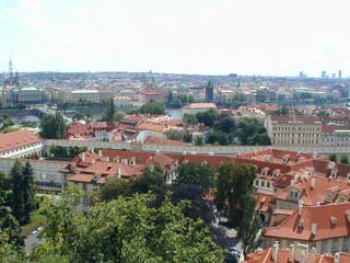 もうこのあとは用事がないので、プラハ城に行く!地下鉄でMalostranskaでおり、城壁に囲まれた、出店の出ている道を歩いてのぼる。やっと城に着き、振り返るとプラハの街並が美しい。ヴァルタヴァ川を狭んで広がる。屋根の色の統一感がいい。