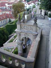城のある高台からの急斜面、南側は庭になっていて、そこで休み休み降りる。人が少なくてほっとする。城壁が望めるし、果物がなってたり、噴水があったり、野外劇場があったり、なかなか楽しかった (50Kr)。