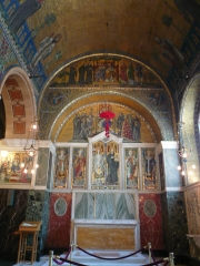 中に入る。おおー。中も色大理石がすげー。両側に並んだ礼拝堂のうち、いくつかはモザイクがすごいことになっていた。新しいのかな?寄付金でどんどん作り足してるのかな?