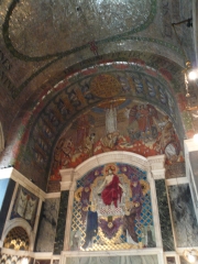 私は左翼のピンクの礼拝堂の、鳳凰と孔雀のモザイクがものすごく気に入った。孔雀って、教会で滅多にみないよなあ。