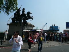 政府関係の建物がひしめくその道はホワイトホール Whitehallといって、元は1698年に消失したWhitehall宮殿に通じる道路で、いろいろゴージャスな建物とか、道の真ん中に祈念碑とかあるから、まあ、いいんだけど。首相官邸はダウニング街10番地。でも警備が厳しく、落ち着いて写真とれない。