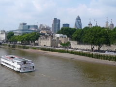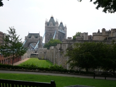 タワー・ブリッジまで歩いていってみる。橋の塔の上にもあがれるようだが(6L)、時間ないのでやめる。川の北側に倫敦塔が臨めるが、、、背後のタケノコが興ざめだなあ。