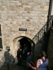 入ってすぐの塔はBell Tower。内側もずっと壁だ。ちょっと進むと、右手に囚われの人々が運ばれた水路Traitor's Gate。左手から中庭に入る。