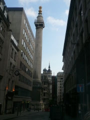途中、大火記念塔(62m, C. Wren)がみえた。1666年に4日間の大火があったらしい。螺旋階段で展望台にあがれるらしい。