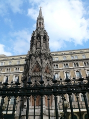 Charing Cross駅の前の塔「エレアノールの十字架」。エドワード1世の妻の亡骸が運送中に泊まった12箇所に十字架を立てさせたらしい。現存するのは3つ。ここのは再建。