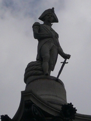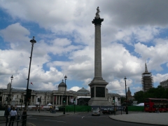 門をくぐるとすぐトラファルガー Trafalgar 広場 (Norman Foster監修) に出る。ここはバスで何度か通った。噴水のむこうにNational Gallery(1838, W.ウィルキンズ, 古典様式)。高い塔の上にネルソン提督の像 Nelson's Column (55m)。東側のSt.Martin's教会(1722-26, James Gibbs)は修理中。