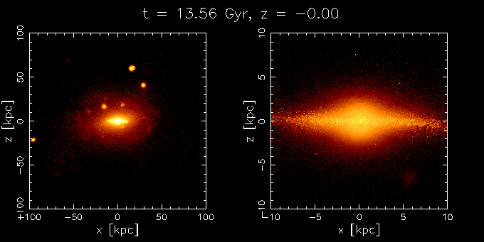 - The best Milky Way-type galaxy simulated from 150 different initial conditions (Movie), and the distributions of the elemens from O to Zn in bulge/disk/halo are reproduced (Kobayashi & Nakasato 2011).